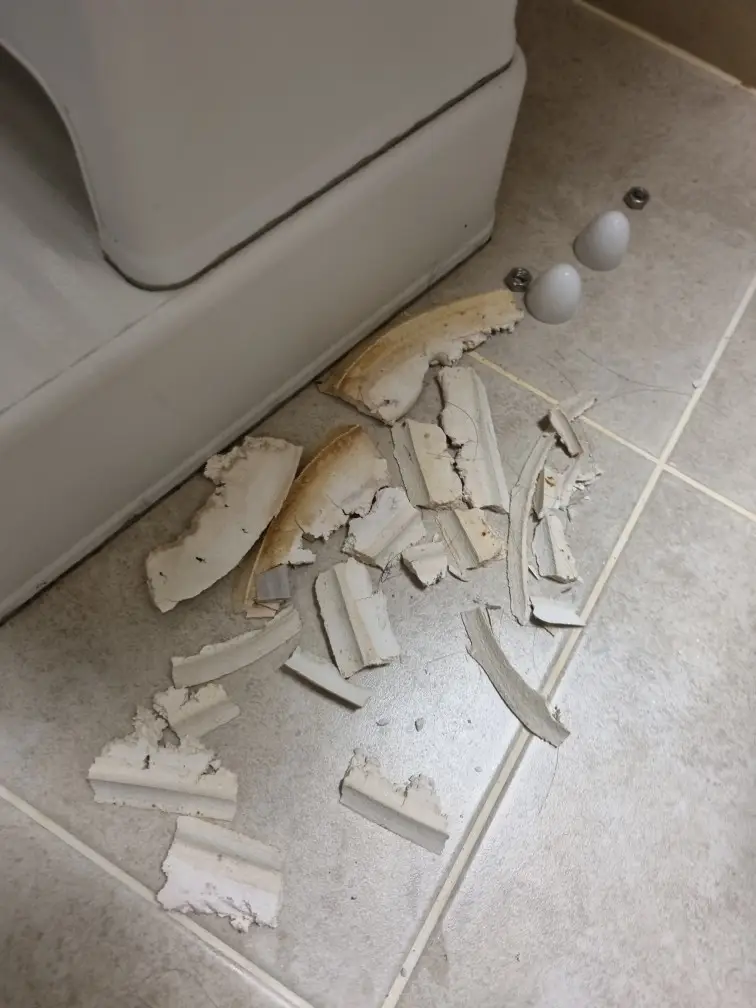 백시멘트 노후 또는 파손: 변기 하부와 바닥 타일 사이를 마감하고 고정하는 역할의 백시멘트(White Cement)가 시간이 지나면서 충격, 수분 등으로 인해 금이 가거나 부스러져 제 역할을 못 하는 경우. (한국의 일반적인 변기 설치 방식)